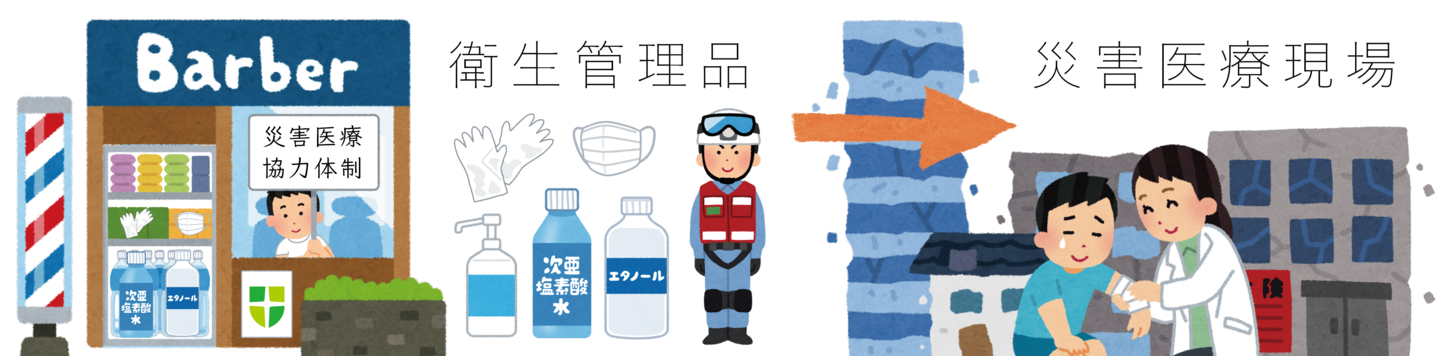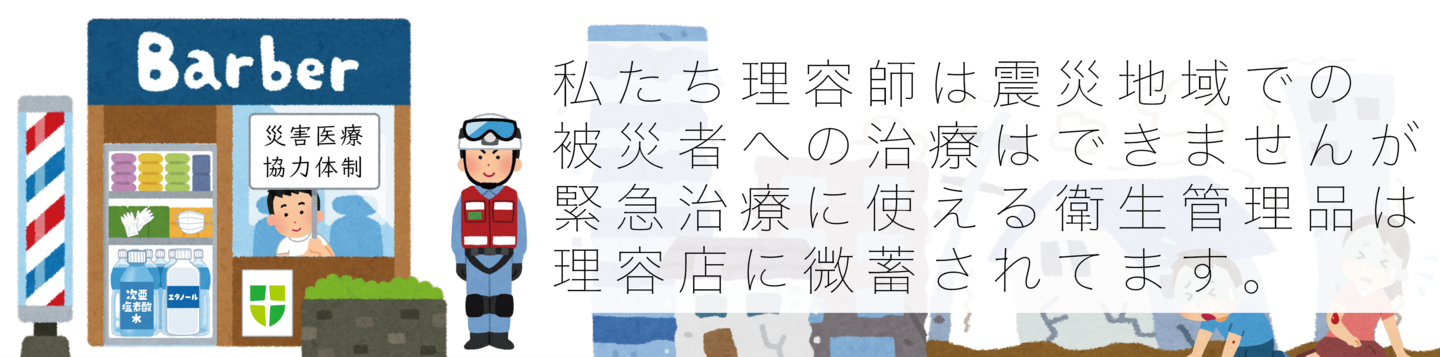 十二分に準備して災害現場に派遣されているかと思いますが、思いがけない場所で災害医療にあたる場合もあるかと思います。薬局などがある商業地なら良いですが、住宅街や農村部でも店舗があるのが「公衆衛生の向上に資することを目的」とした国家資格業である「理容店」だと思うのです。